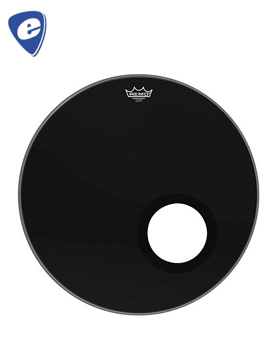 PARCHE REMO 22 BASS HEAD NEGRO C/ AGUJERO ENC